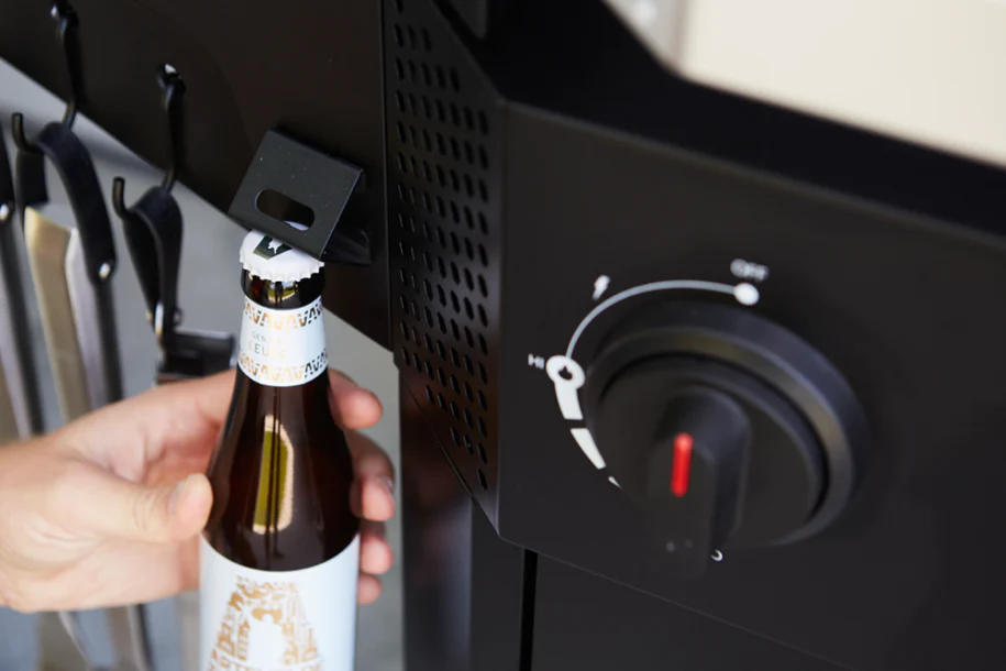• Integreeritud gaasiballooni hoidik: Hoidab gaasiballooni kindlalt ja turvaliselt grilli sees.
