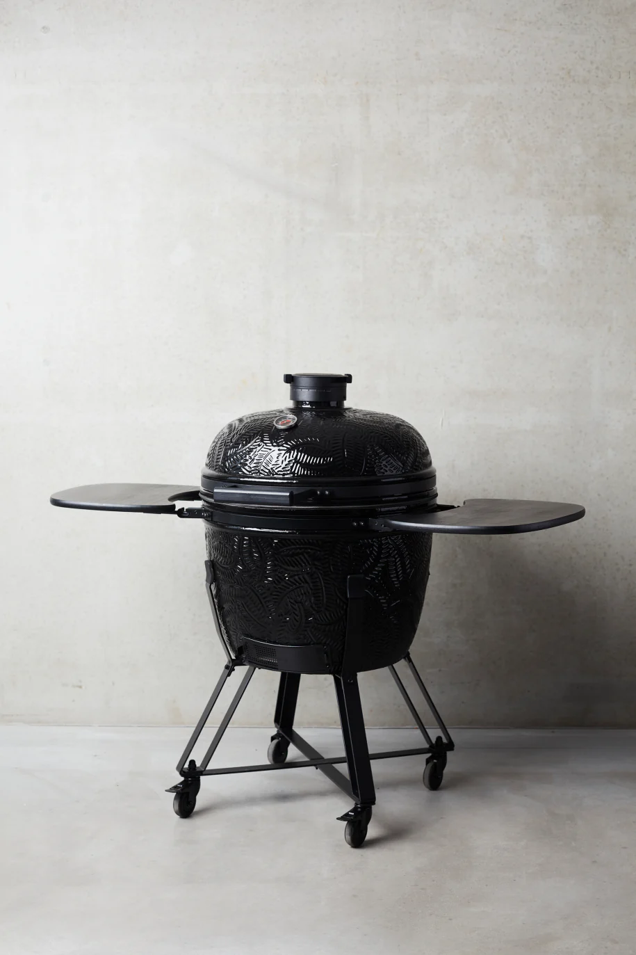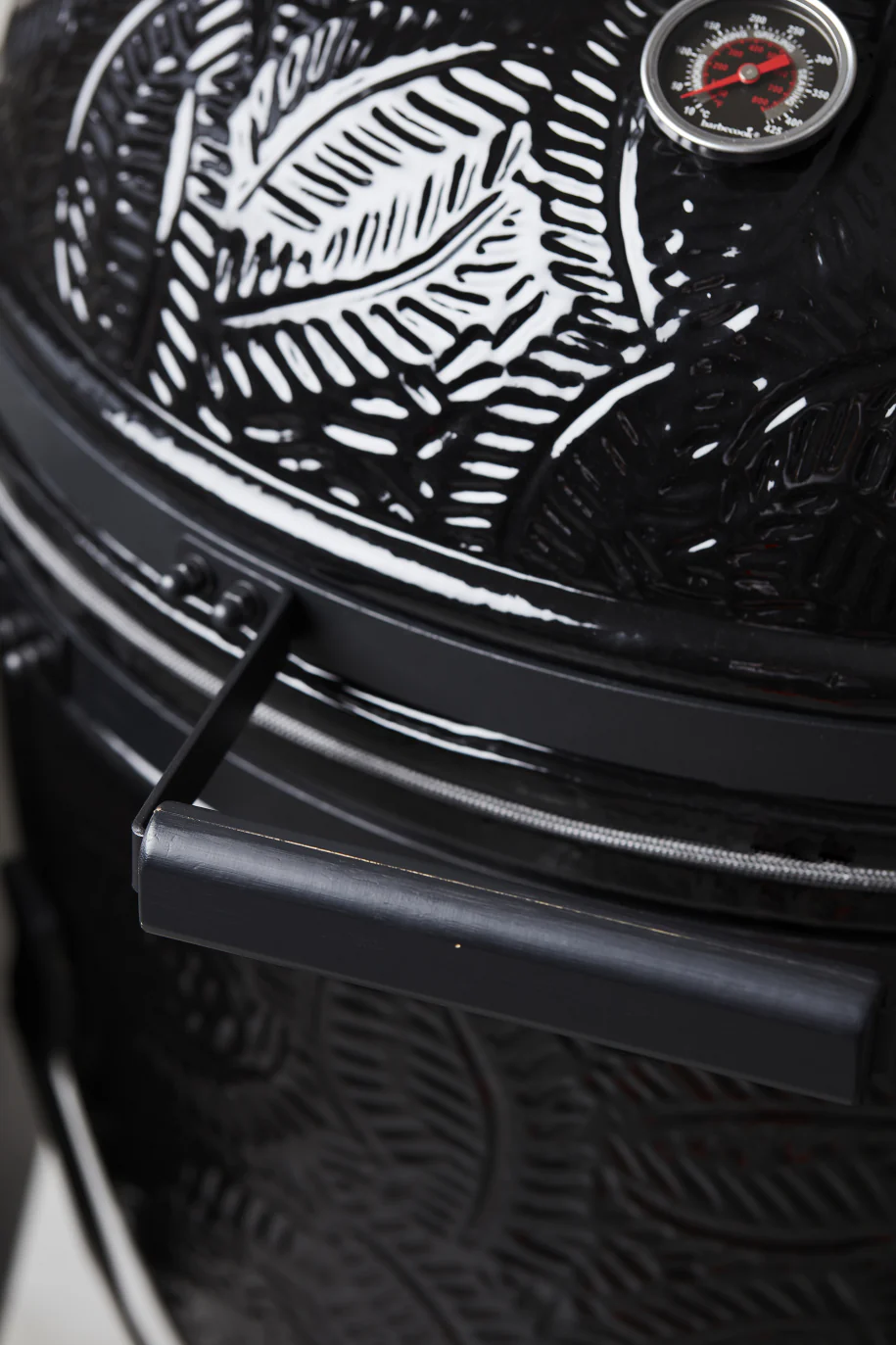 Barbecook Kamal 60/XL ei ole mitte ainult kvaliteetne grill, vaid ka tõeline disainiteos. Must matt viimistlus kaunite lehereljeefidega lisab grillile elegantse välimuse, mis sobib igasse aeda või terrassile. Sisseehitatud termomeeter näitab täpselt temperatuuri (nii °C kui °F) ja ulatub isegi üle 1000°C, mis teeb Kamal 60/XL tõeliseks kõik-ühes grilliks.