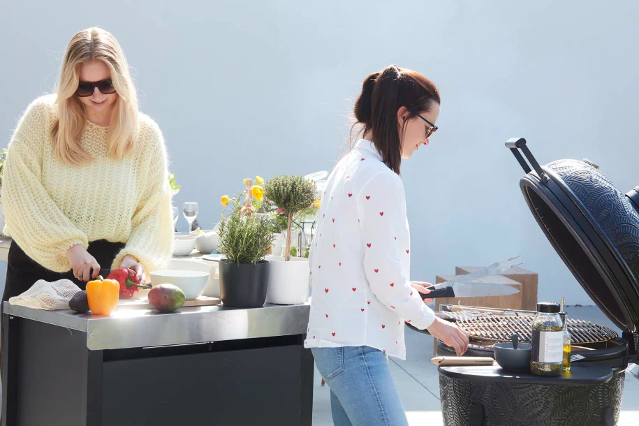 Väliköök Premium on kaasaegne ja mobiilne õuekapp, mis muudab grillimise ja välikokkamise mugavamaks. Sellel on roostevabast terasest töötasapind, mida on lihtne puhastada ning mille kõrgendatud servad tagavad, et toidu koostisosad ja tarvikud püsivad kindlalt paigal.