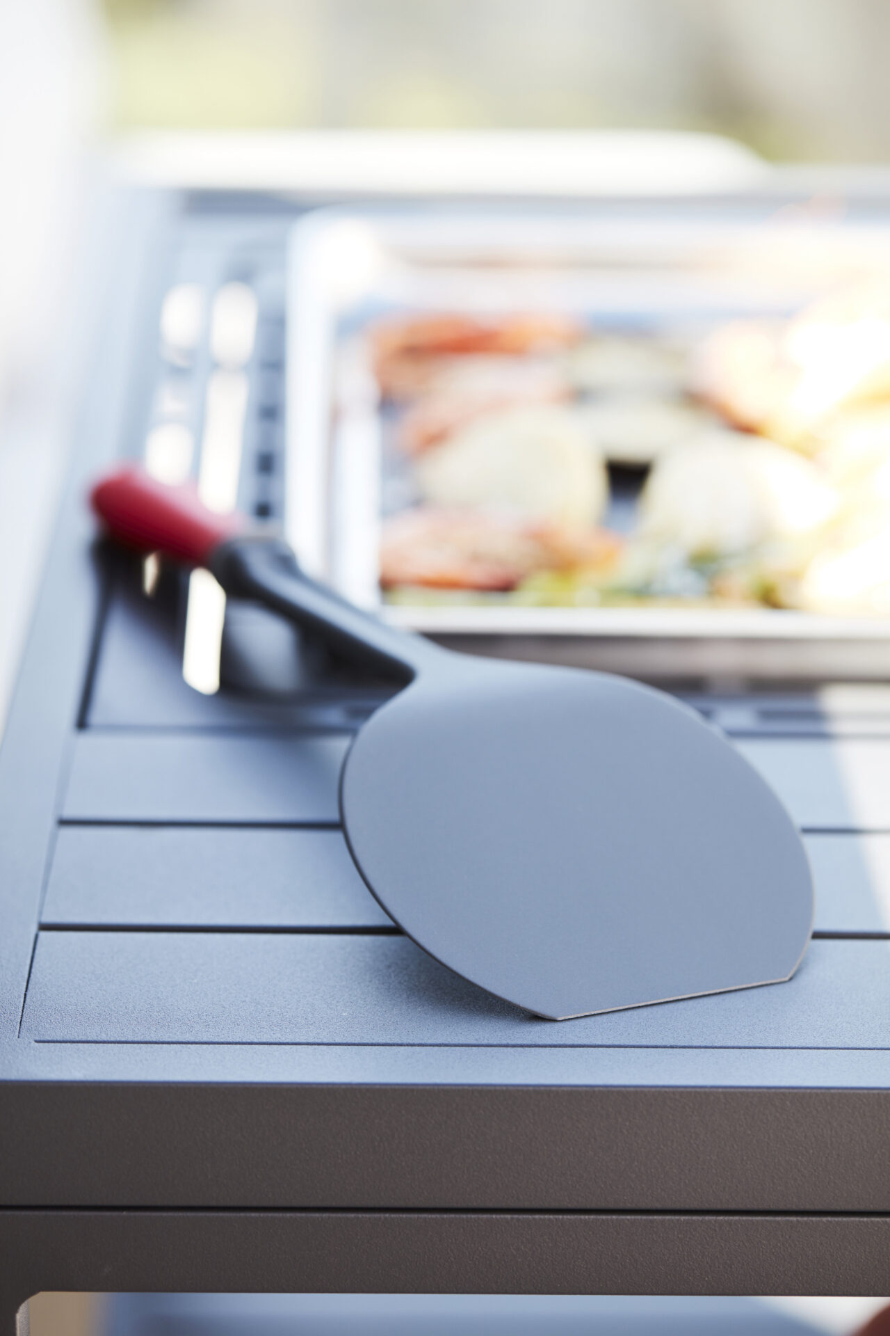 Barbecook Plancha pannilabidas on ideaalne tööriist igale grillihuvilisele, kes naudib lõunamaiseid roogasid. Spetsiaalselt loodud õrna Thermicore küpsetusplaadi jaoks, tagades selle pikaealisuse ja kriimustustevaba kasutuse. Sobib loomulikult ka tugevama kattega pindadel toidu käsitlemiseks.