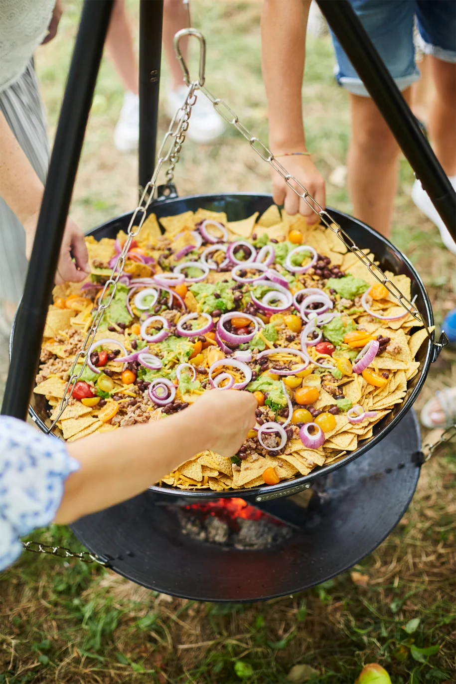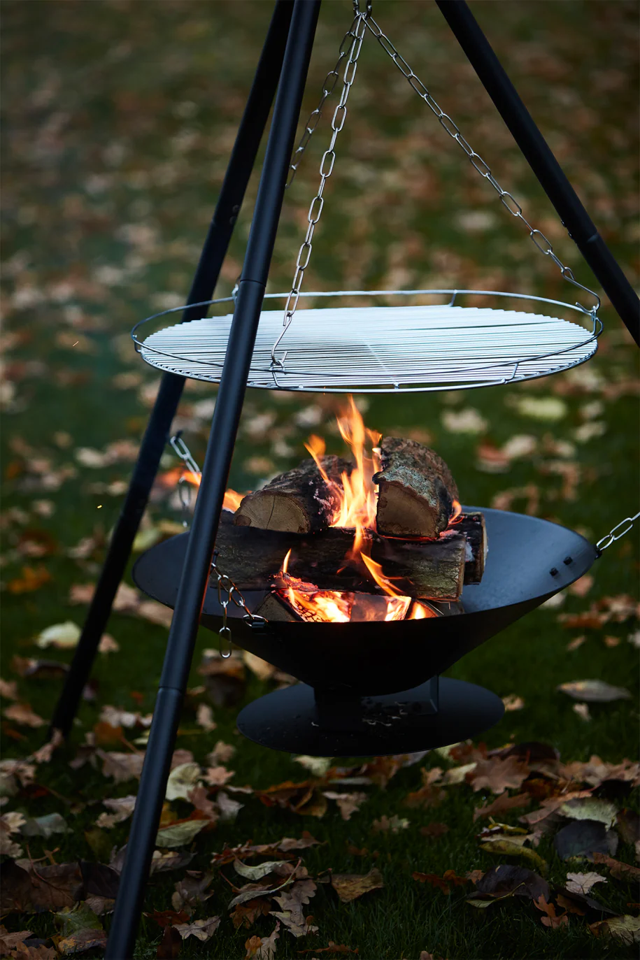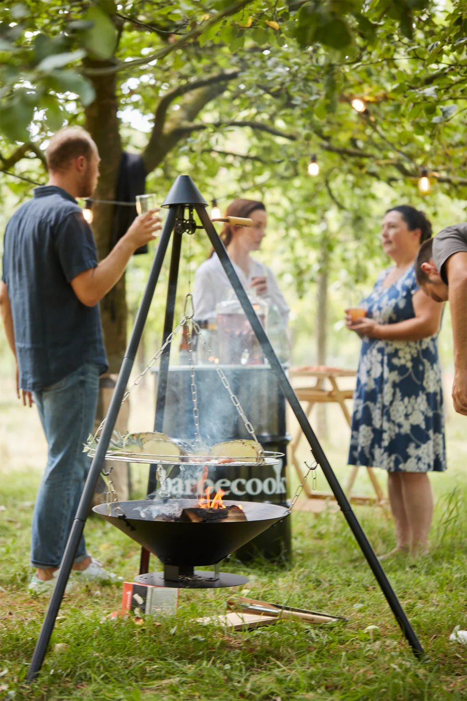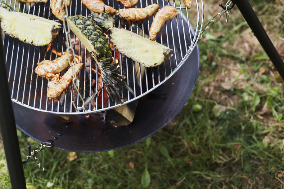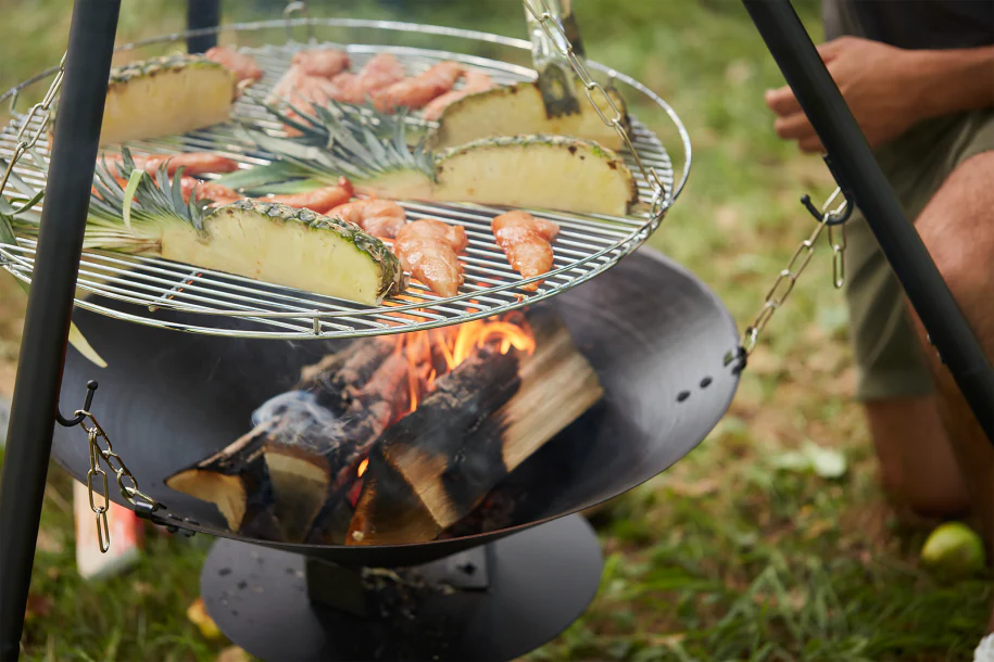 Mitmekülgsed küpsetusvõimalused: Kolmjala vahel asetseva tulekausi kohale saab riputada resti, panni või poti, mis võimaldab grillimist, praadimist ja hautamist.