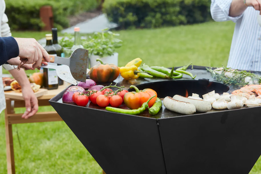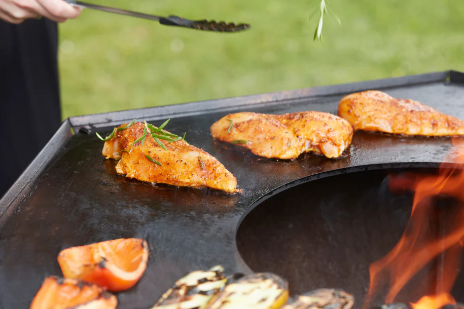 Tõstetud servadega küpsetuspinnad: Hoiavad ära rasvapritsmete sattumise terrassile ja takistavad toiduainete kukkumist küpsetuspinnalt.