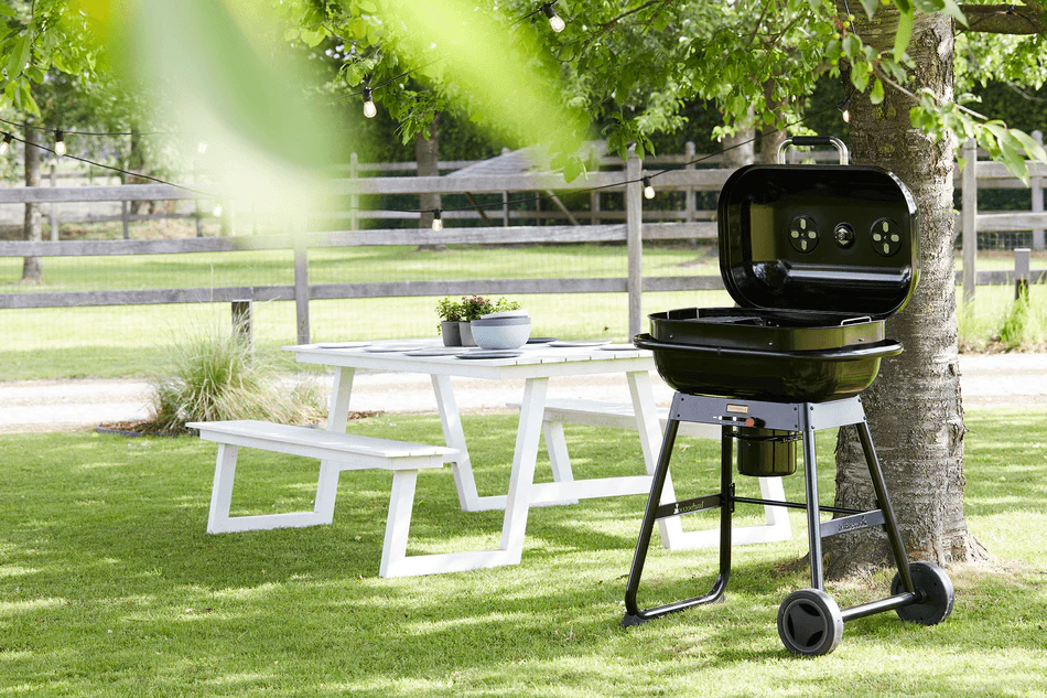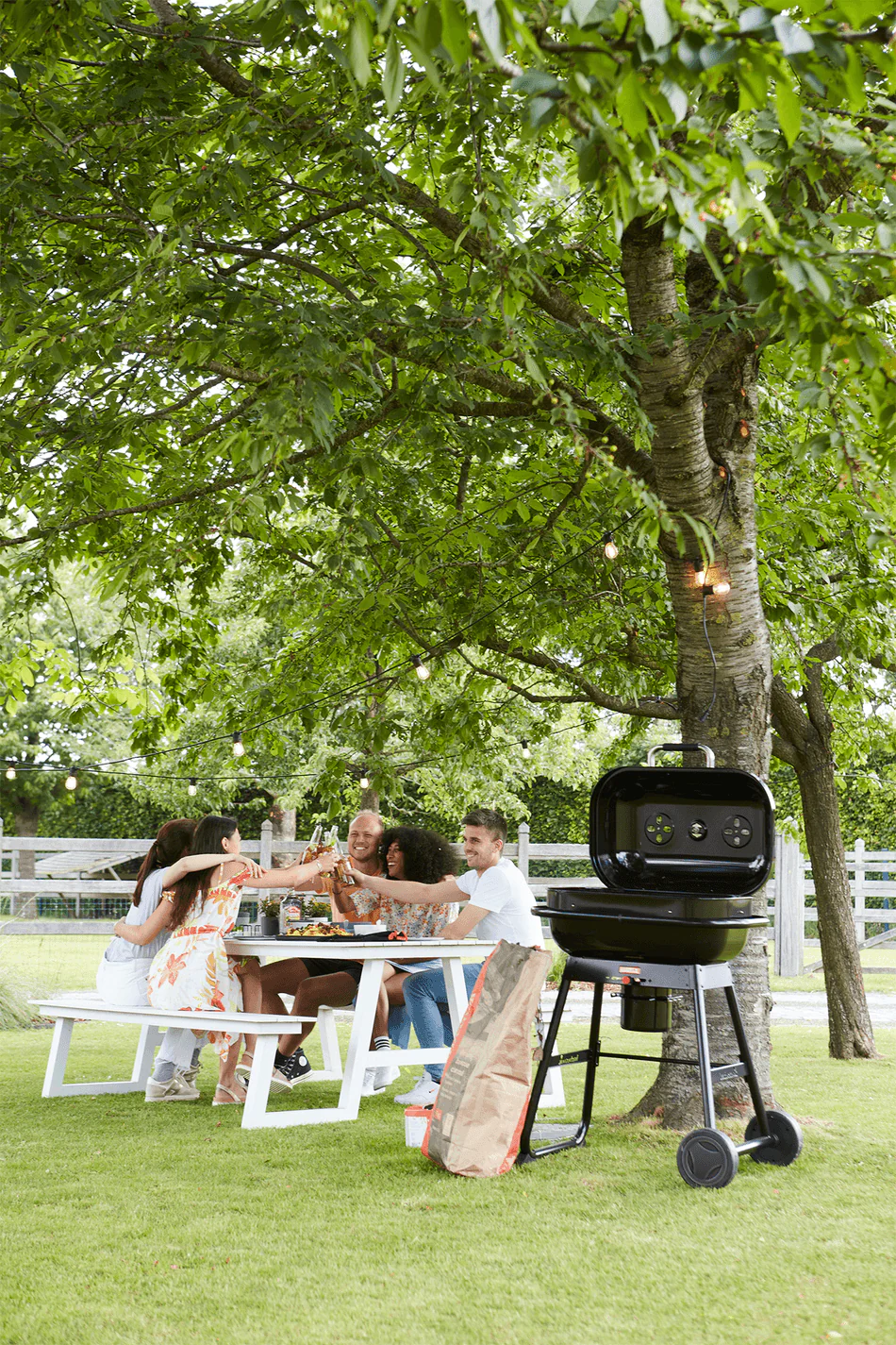 • Lihtne süüdata: Grill on lihtsasti kokkupandav ning tänu kahele tugevale rattale saab seda hõlpsalt liigutada.
