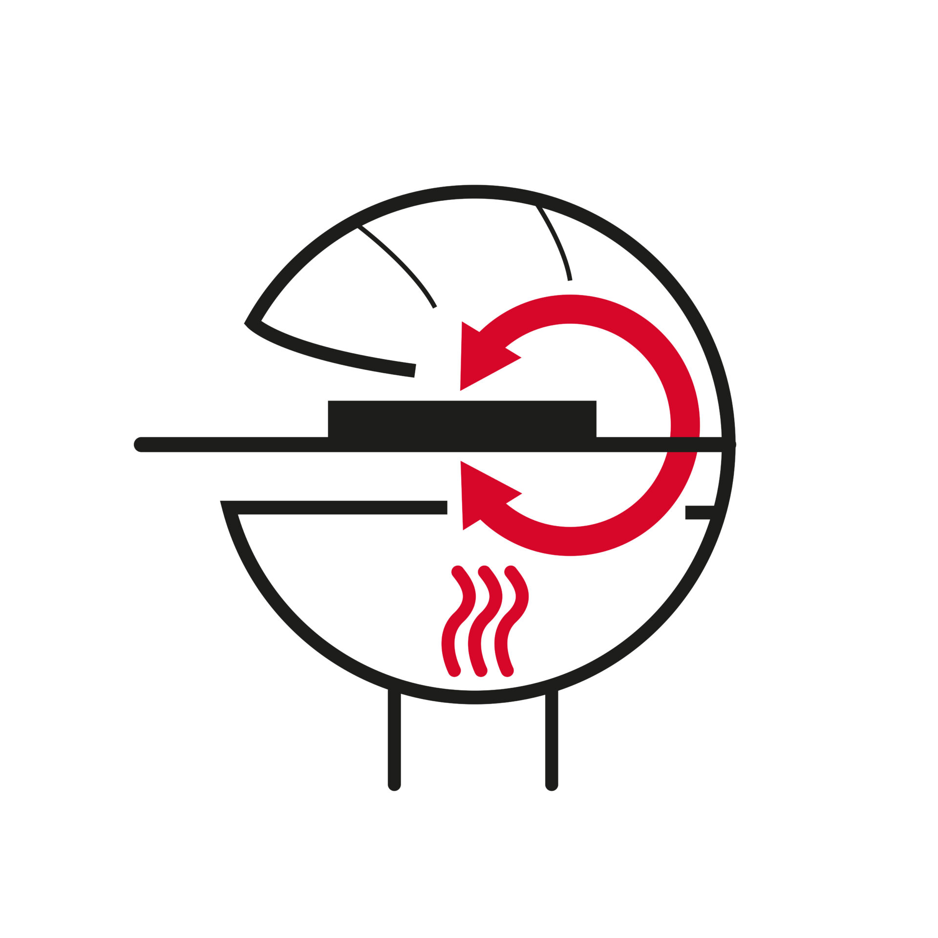 Tänu oma erilisele kujule tagab see grillitava toidu mõlemale küljele ideaalse kuumuse. Grillsöe kuumus on suurepäraselt jaotatud ja see suunatakse tagasi grillile kaane peegeldava efekti ja reguleeritava kõrguse abil.